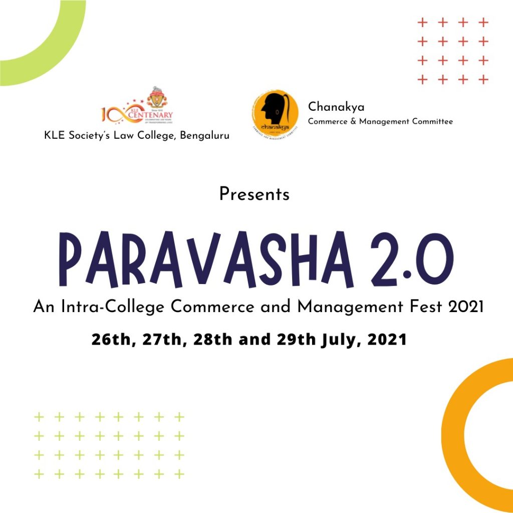 K.L.E Society’s Law College, Bengaluru is hosting its prestigious “Paravasha 2.0” Intra-College Commerce & Management Fest 2021 (Virtual Mode).